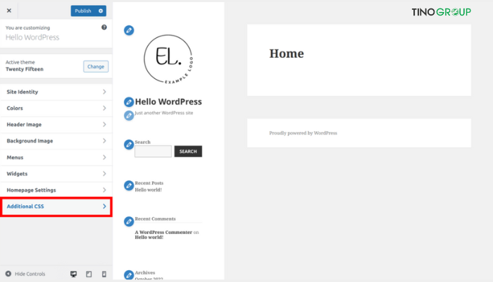 Vì tính năng này chỉ khả dụng trên WordPress Customizer, nên trong hướng dẫn này, Tino sẽ sử dụng giao diện Twenty Fifteen. Làm theo các bước sau để thêm CSS tùy chỉnh và chỉnh sửa logo: