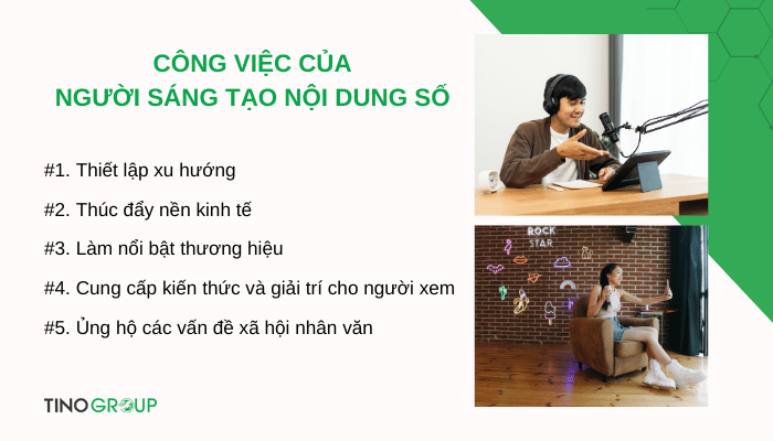 Người sáng tạo nội dung số góp phần làm giàu nội dung trên không gian mạng với những ý tưởng mới mẻ và góc nhìn độc đáo. Họ không chỉ sản xuất nội dung mà còn định hướng xu hướng văn hóa và kỹ thuật số, ảnh hưởng đến cách người dùng tiếp nhận thông tin.